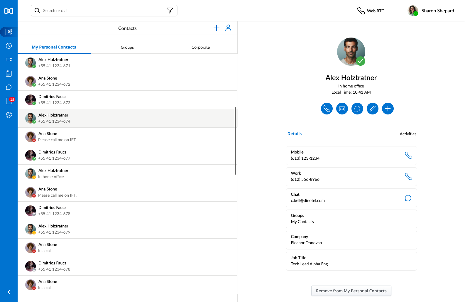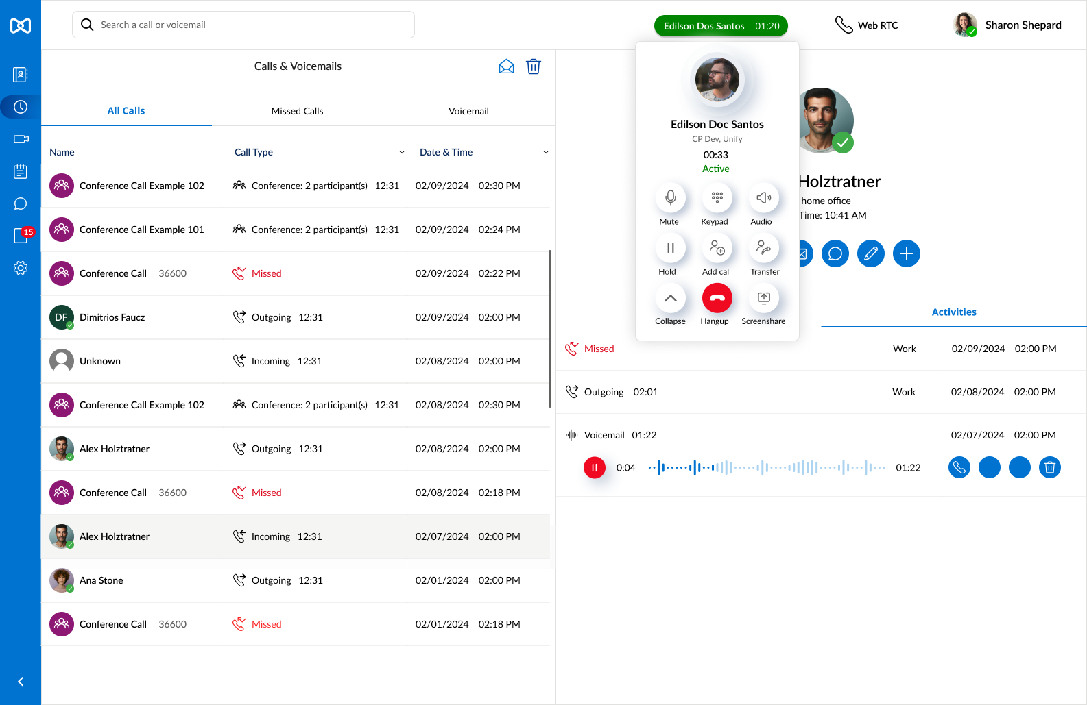 Develop a more comprehensive contact information view, incorporating an “Activities” section that aggregates all related interactions—such as calls, voicemails, messages, and files—into a single, easily navigable interface.
